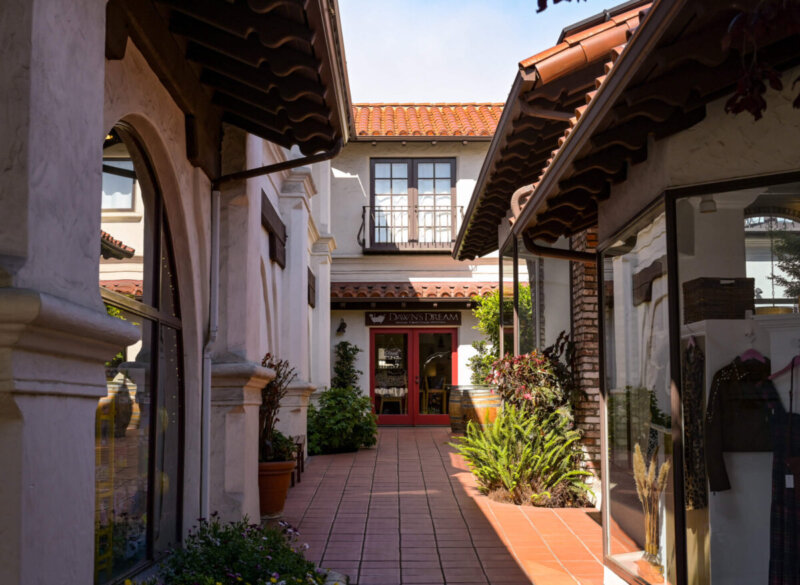 One of my absolutely favorite things about Carmel is the presence of secret passageways throughout the commercial areas of the city. These may at first appear to be narrow walkways between the buildings, but they typically open up into courtyards with gardens, shops, restaurants, art galleries or, more likely, some combination thereof. These spaces are open ended, allowing access from both sides, thereby connecting two parallel streets in mid-block. Sometimes there are signs identifying what can be found in passageway, but just as often the only way to know what you might find is to wander in and find out.
