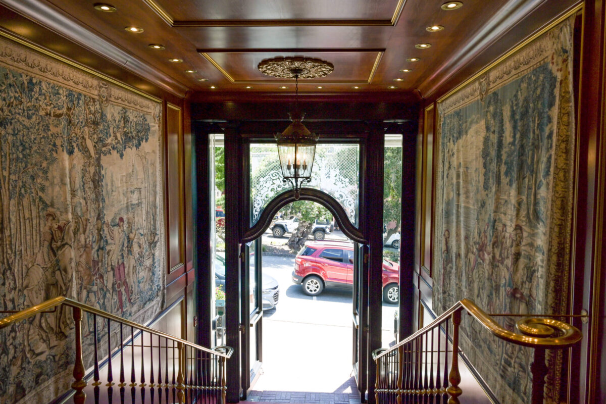 On our walking tour, which I mentioned in the previous post, we stopped into the lobby of the historic Pine Inn, which was the first hotel in the city, built in 1889. The building itself was moved in the early 1900’s from its original site on a hill several blocks away to its current location much closer to the ocean and the heart of the city. According to our tour guide, it was literally rolled down the hill on logs. Amazing. In any case, over the years there have been many additions to the hotel building and some free standing cottages have been added to the property. It is now a sprawling complex that takes up the entire city block. We entered and exited the hotel from a side door so I didn’t get a photo of the front of the building, nor was I able to do so during my subsequent visits for various reasons. However, this is one of the few places for which I have interior shots.