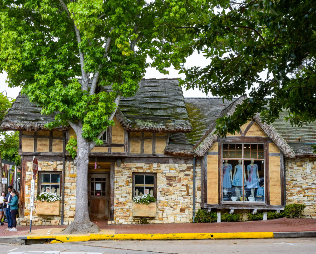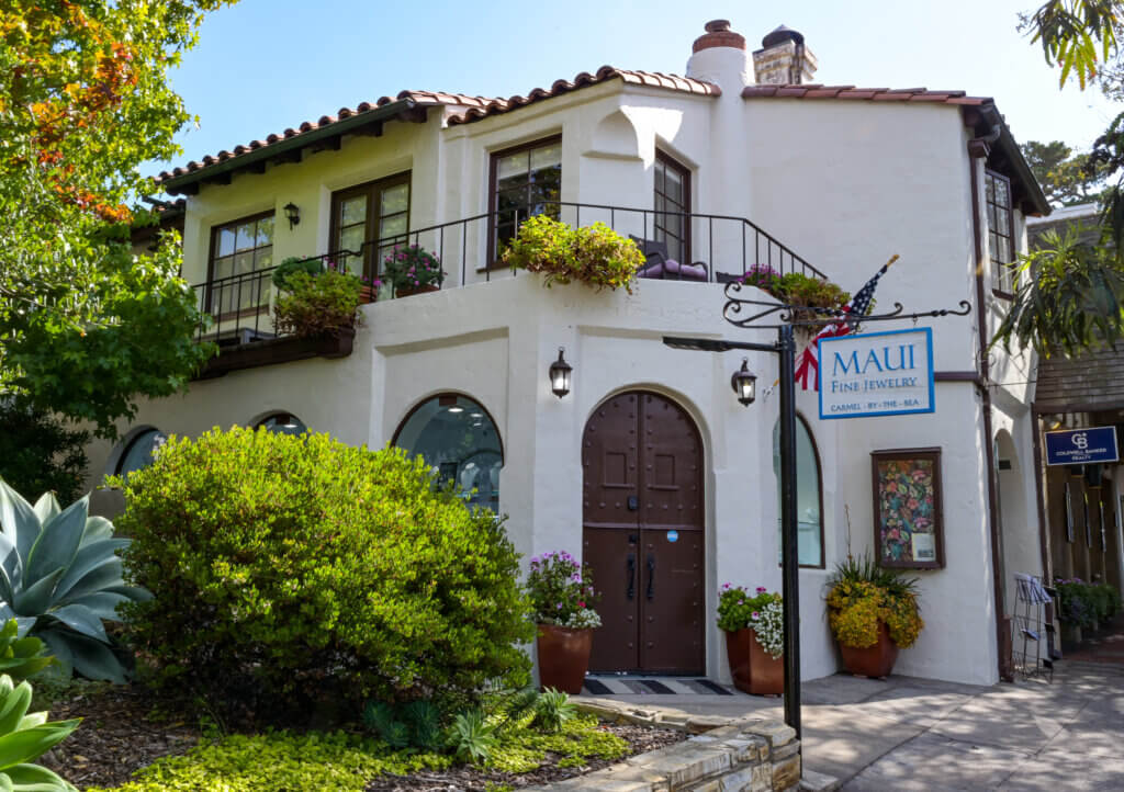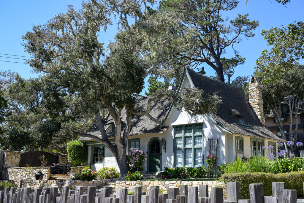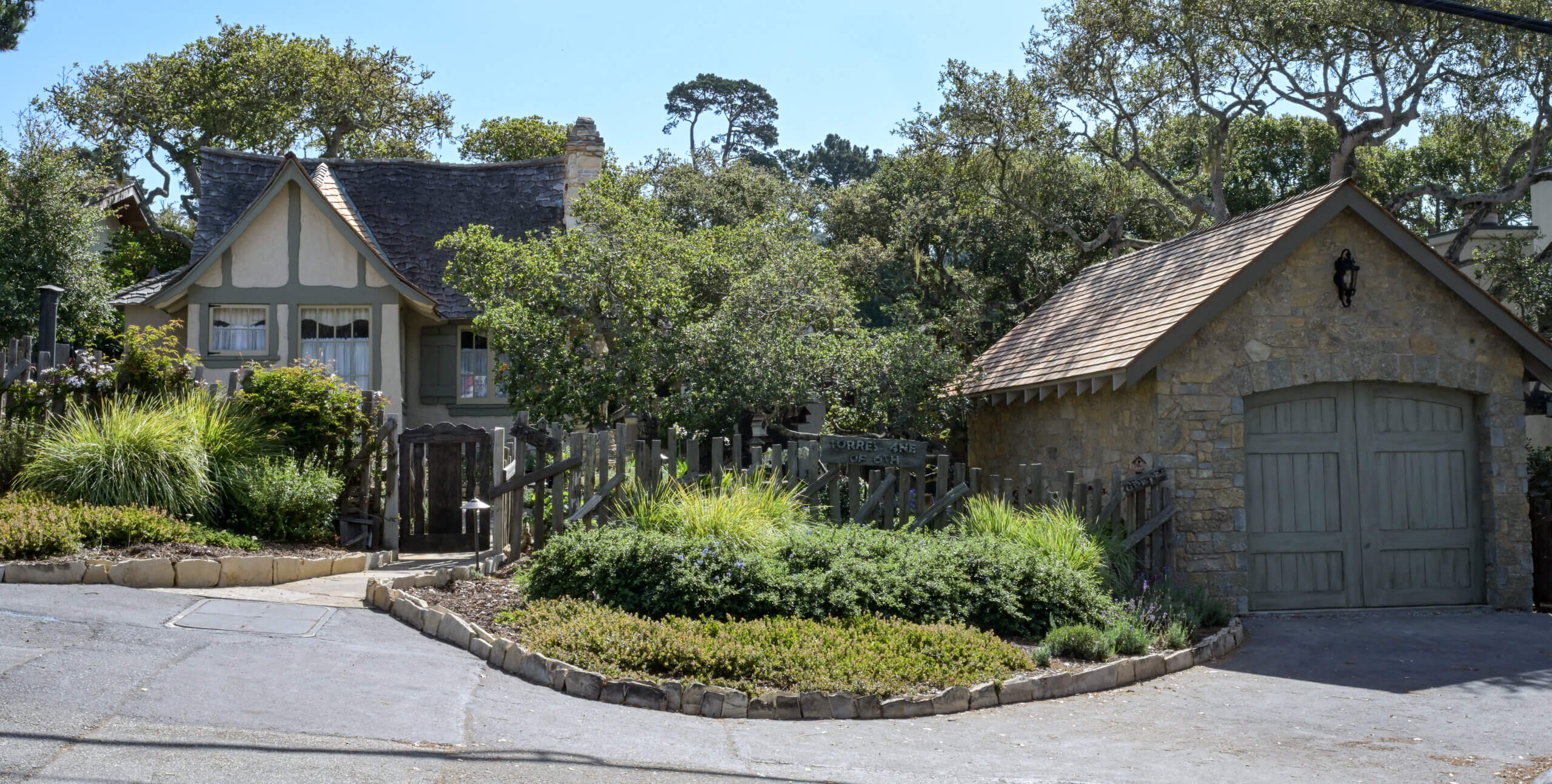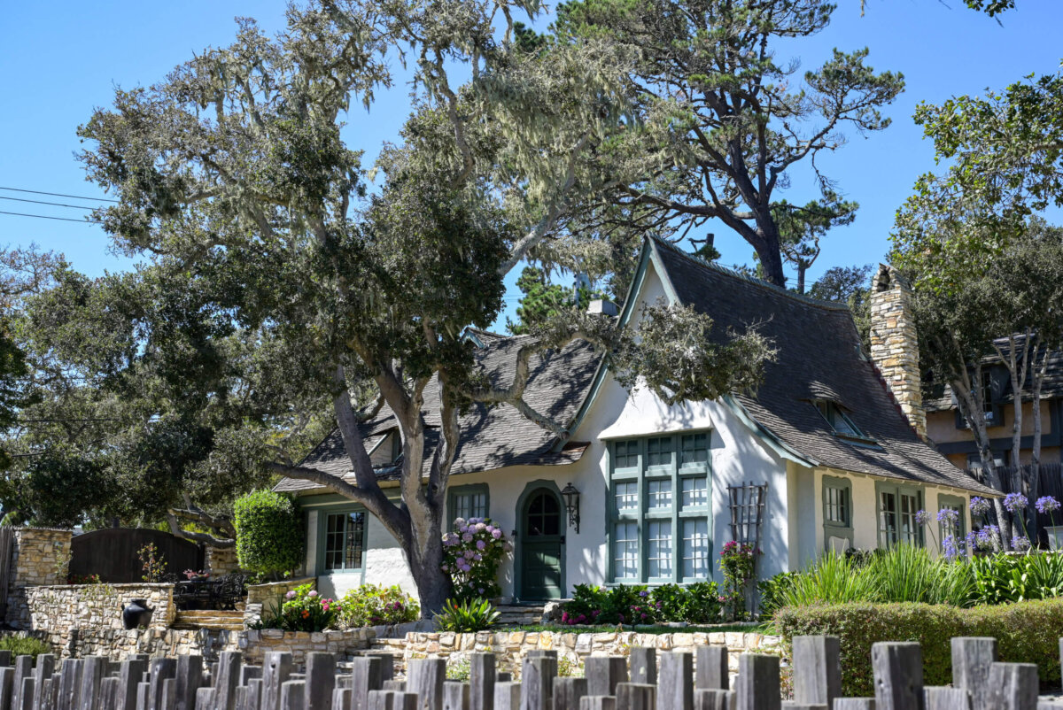 Carmel-by-the-Sea is known for a variety of architectural styles but perhaps the most unique is the “Comstock cottage” also known as the fairy-tale cottage style. Most of the homes built in this style were constructed by two builders, Michael J. Murphy and Hugh Comstock in the 1920s and 1930s. They typically featured steeply pitched roofs, often with multiple gables, arched doorways, and oddly shaped windows.