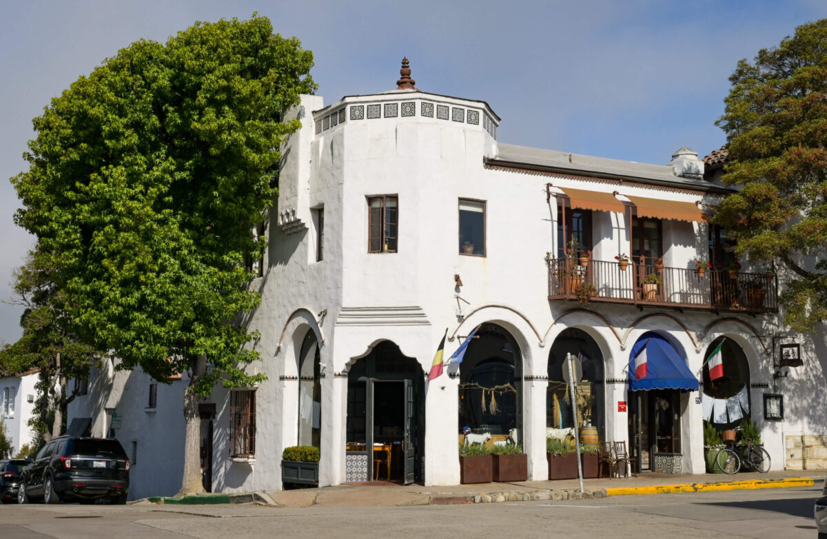 Also very common in Carmel, particularly in commercial buildings, are the Spanish Revival, Mediterranean, and California Mission styles of architecture. They are all similar and I confess I don’t really know what distinguishes one from another. The photos below offer some examples. I noticed as I was preparing this post that all the buildings I saw in this style were situated on street corners rather than in the middle of a block. Interesting.